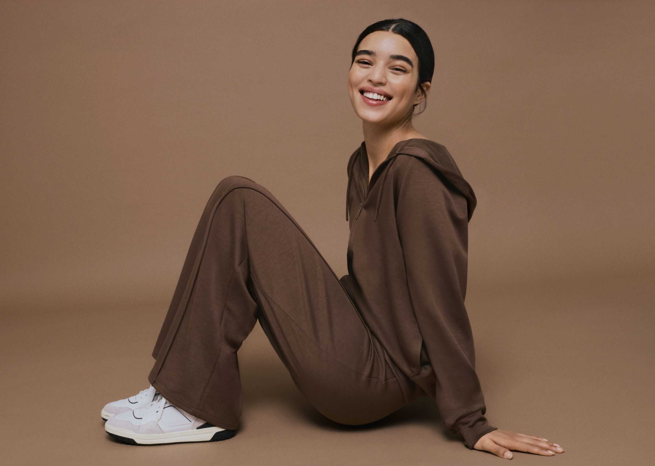 The Superior Softness line consists of essential pieces. Key highlights include a zip-up hoodie with drawstring, an everyday must-have that combines functionality with comfort and a crew-neck sweatshirt with a central ribbed detail, blending a modern cut with a casual yet refined style. To complete the collection: a soft, flowing palazzo model with front pleats that elongate the figure and a smooth waistband for a flattering fit on all body types, and a more tailored, straight-leg version ideal for those who prefer a clean and simple aesthetic.